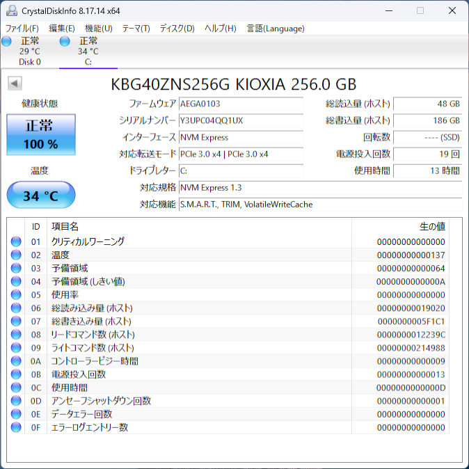 【ストレージ】SSD KIOXIA製 256GB(新品) + HDD Western Digital製 500GB