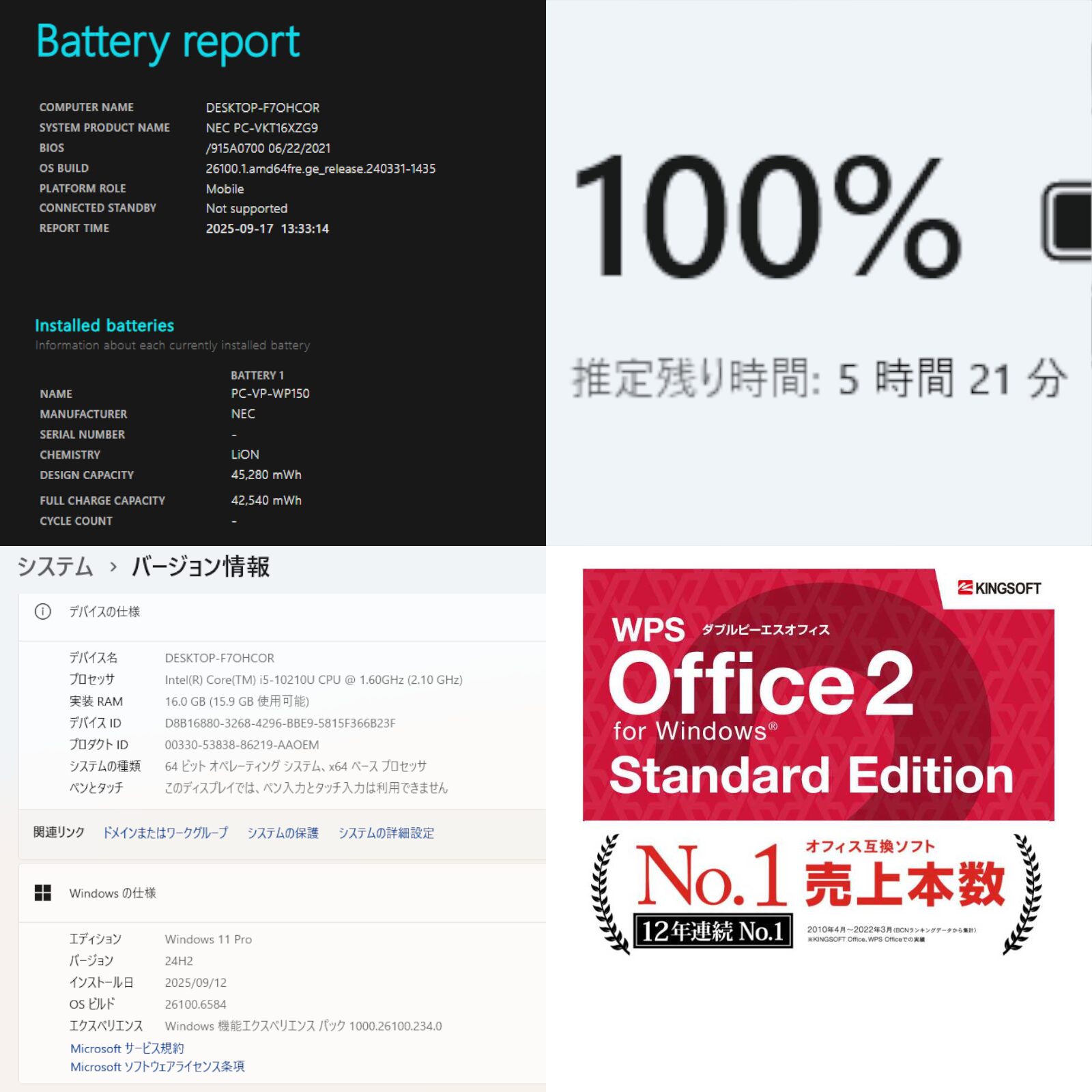 ・当店の中古パソコンのご購入にあたり、保証規定がございます。詳しくは「なんもさ 保証規定」をご確認ください。