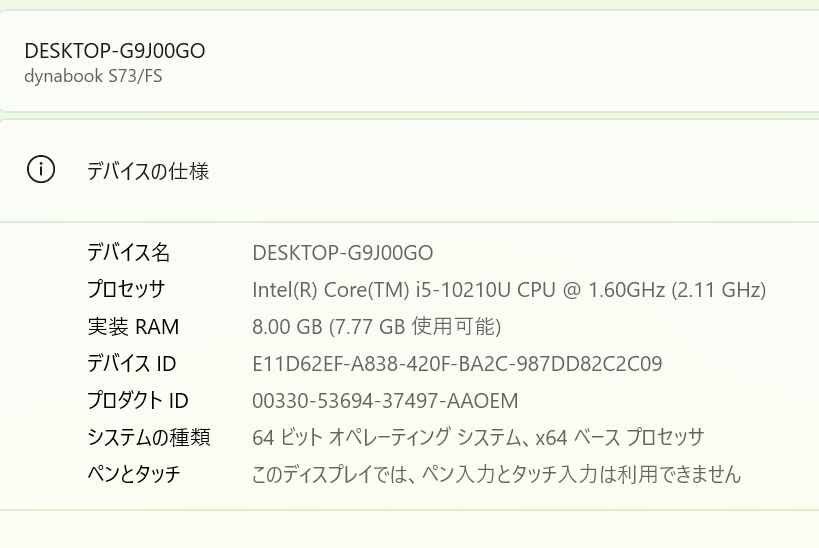 ・中古PCに関して、入っているOSによっては機種特有の機能やアプリケーション等が使用できない場合もありますのでご了承下さい。